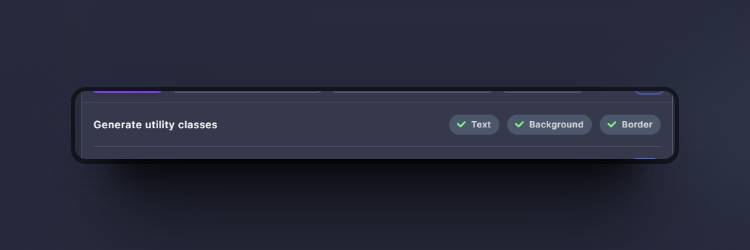 With each color, you will have the option to generate utility classes for text, background and borders. These will be automatically generated depending on which of the 3 items you have selected.&#x20;