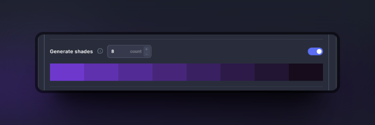 With this option enabled, you will see a dropdown showing you the shades generated from your color. You can select the amount in the count box ranging from 3 up to 10 shades.&#x20;